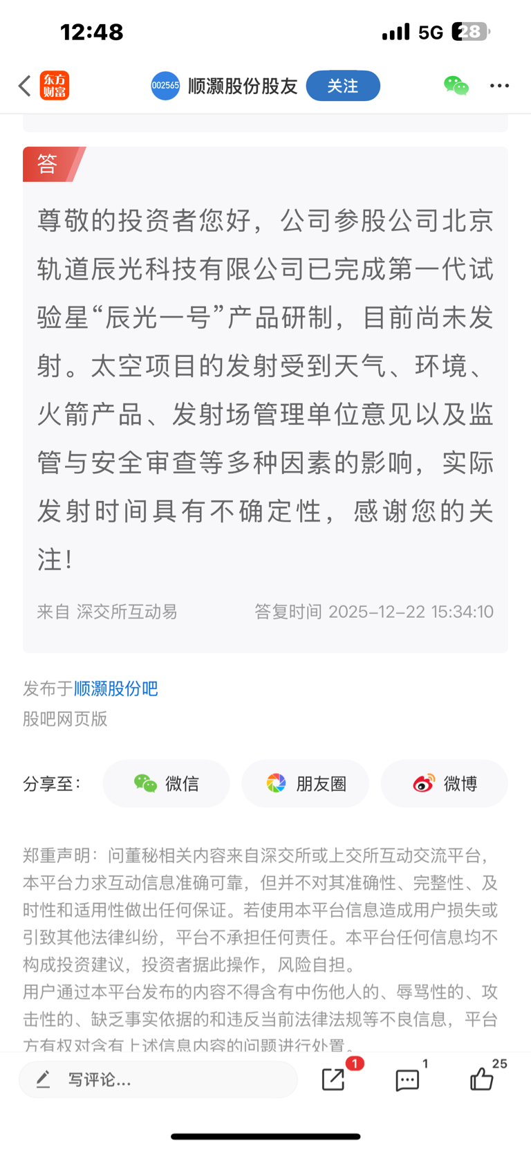 $顺灏股份(SZ002565)$ 辰光一号要发