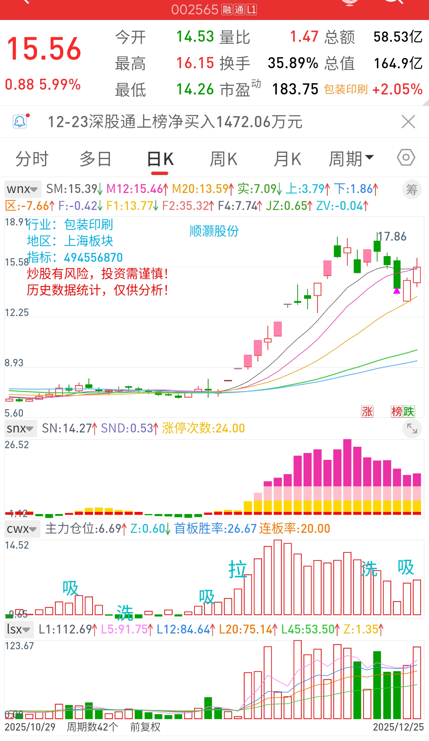 $顺灏股份(SZ002565)$ #收盘点评# #炒股日记# #复盘记录# #强势机会# #股市怎么看# k线上,大阳线突破M12和SM,非常强势。长上影线说明抛压较大。连续大阳线,说明买入意图很强。