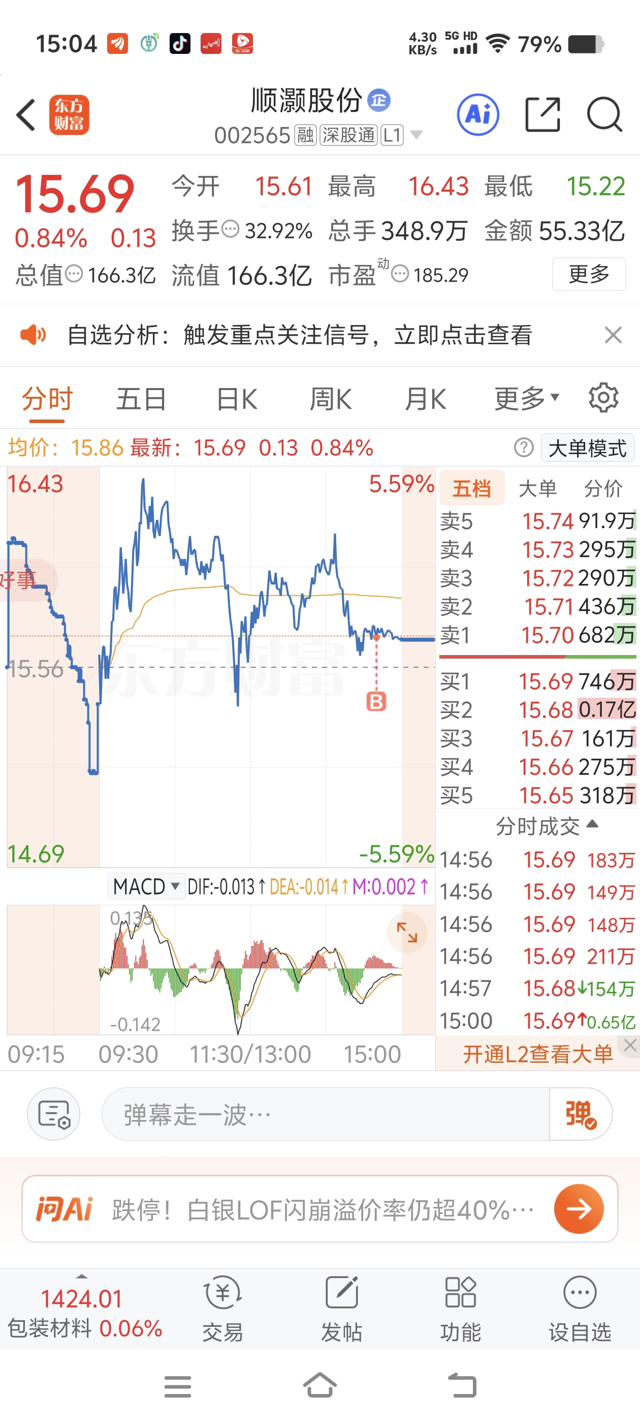 $顺灏股份(SZ002565)$ 靠,卖了机电来接你,好了,机电拉上去了,你又砸下来了,真是无语了