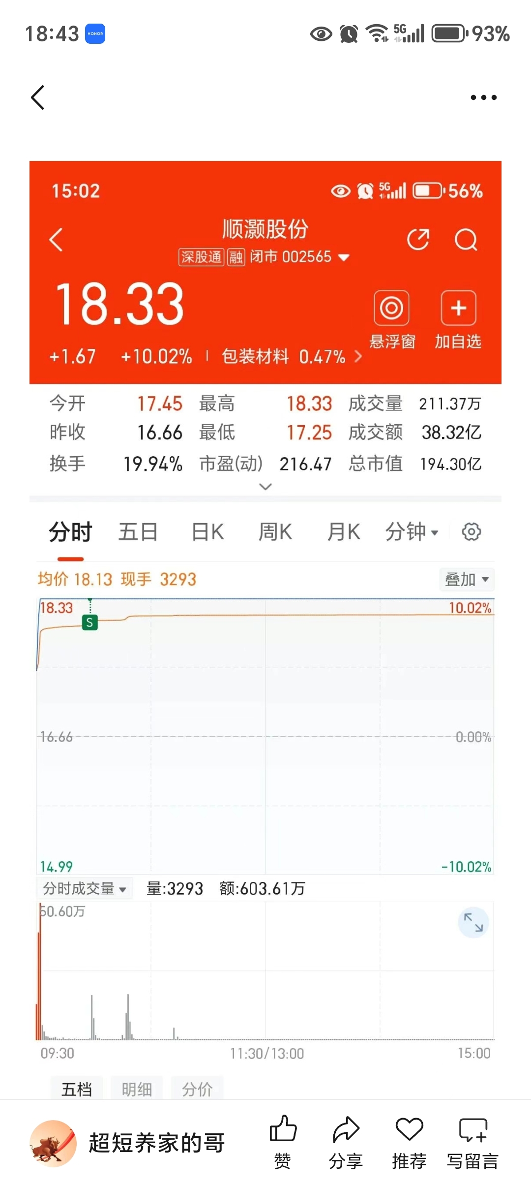 $顺灏股份(SZ002565)$ 我卖了顺灏股份,涨停板卖了。周二涨停板卖了翠微股份买顺灏股份,周三卖了顺灏股份涨停板卖了又买回来翠微股份。丝滑吗?