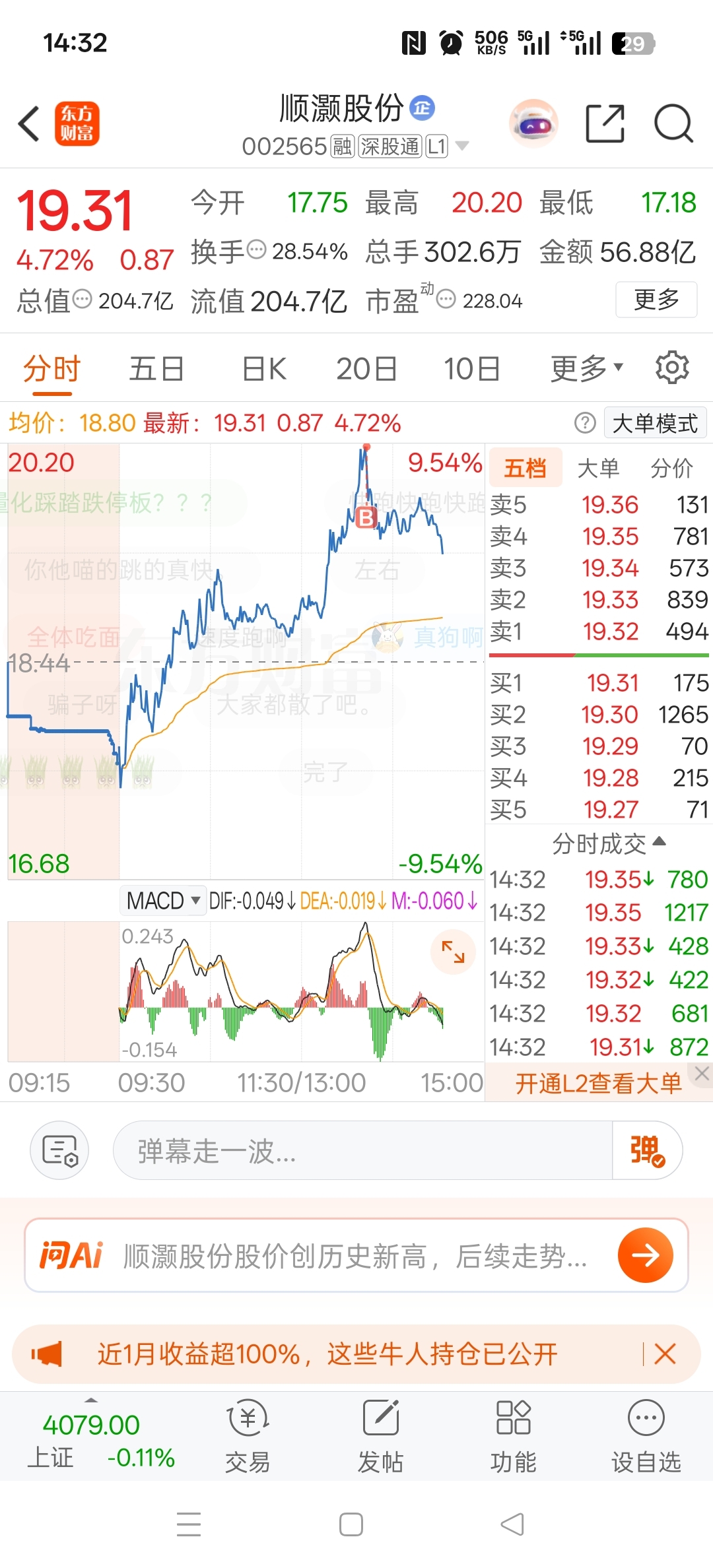 $顺灏股份(SZ002565)$ 我严重怀疑你是盯着我的资金进来的