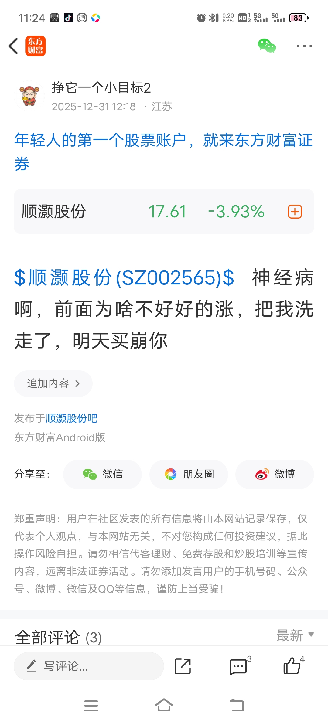 温馨提示: 1.根据《证券法》规定,禁止编造、传播虚假信息或者误导性信息,扰乱证券市场;2.用户在本社区发表的所有资料、言论等仅代表个人观点,与本网站立场无关,不对您构成任何投资建议。用户应基于自己的独立判断,自行决定证券投资并承担相应风险。《东方财富社区管理规定》