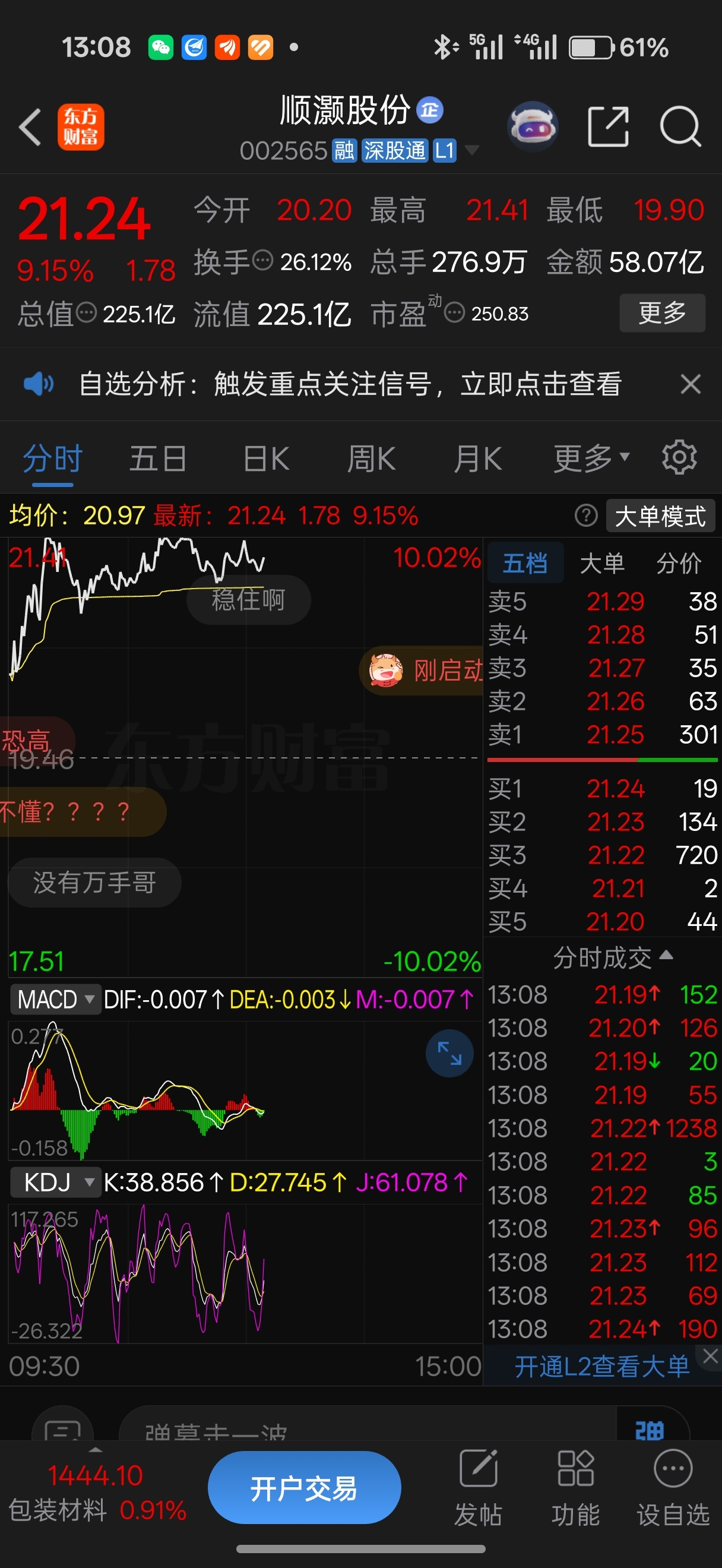 $顺灏股份(SZ002565)$ 一会跳水一波,2点45分左右封板