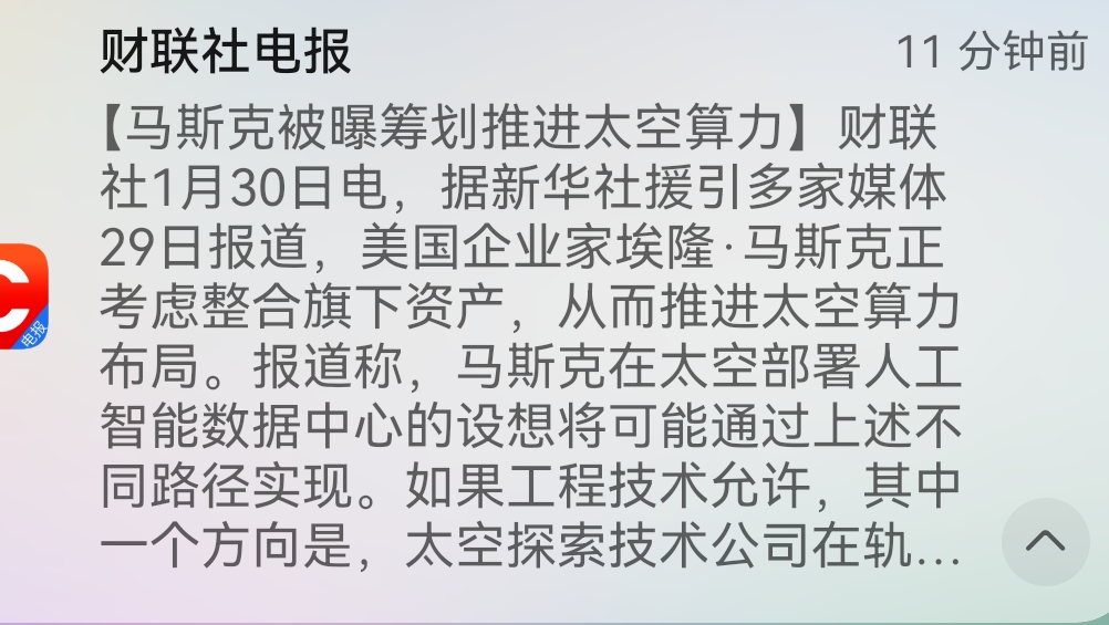 周末这两个消息加起来看,我有个不太负责任的建议前瞻布局太空算力赛道低位轨道辰光(