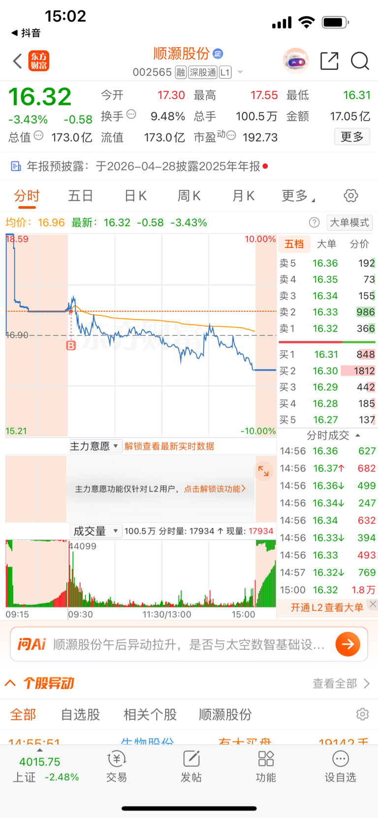 $顺灏股份(SZ002565)$ 航天是从来都是让你失望