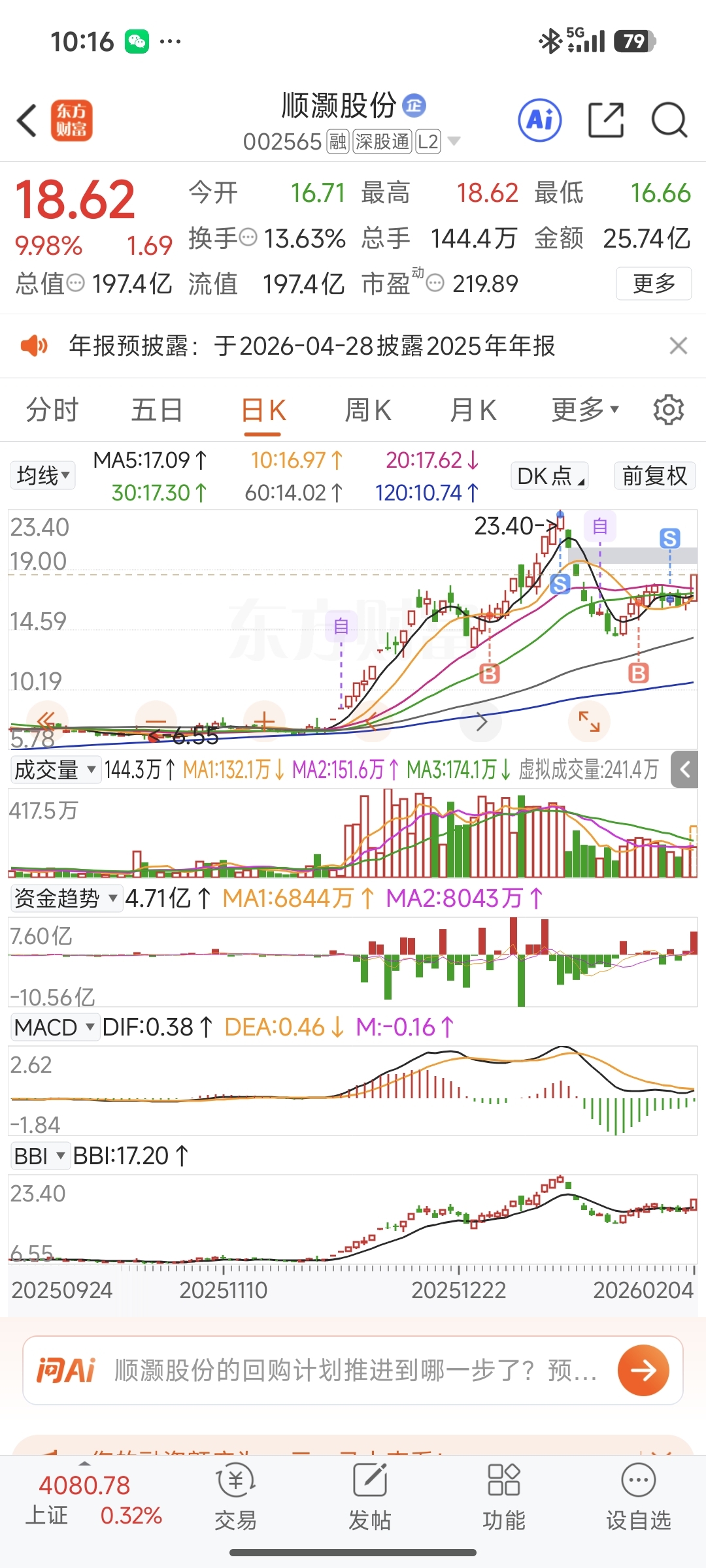 $顺灏股份(SZ002565)$ 又把我磨走了