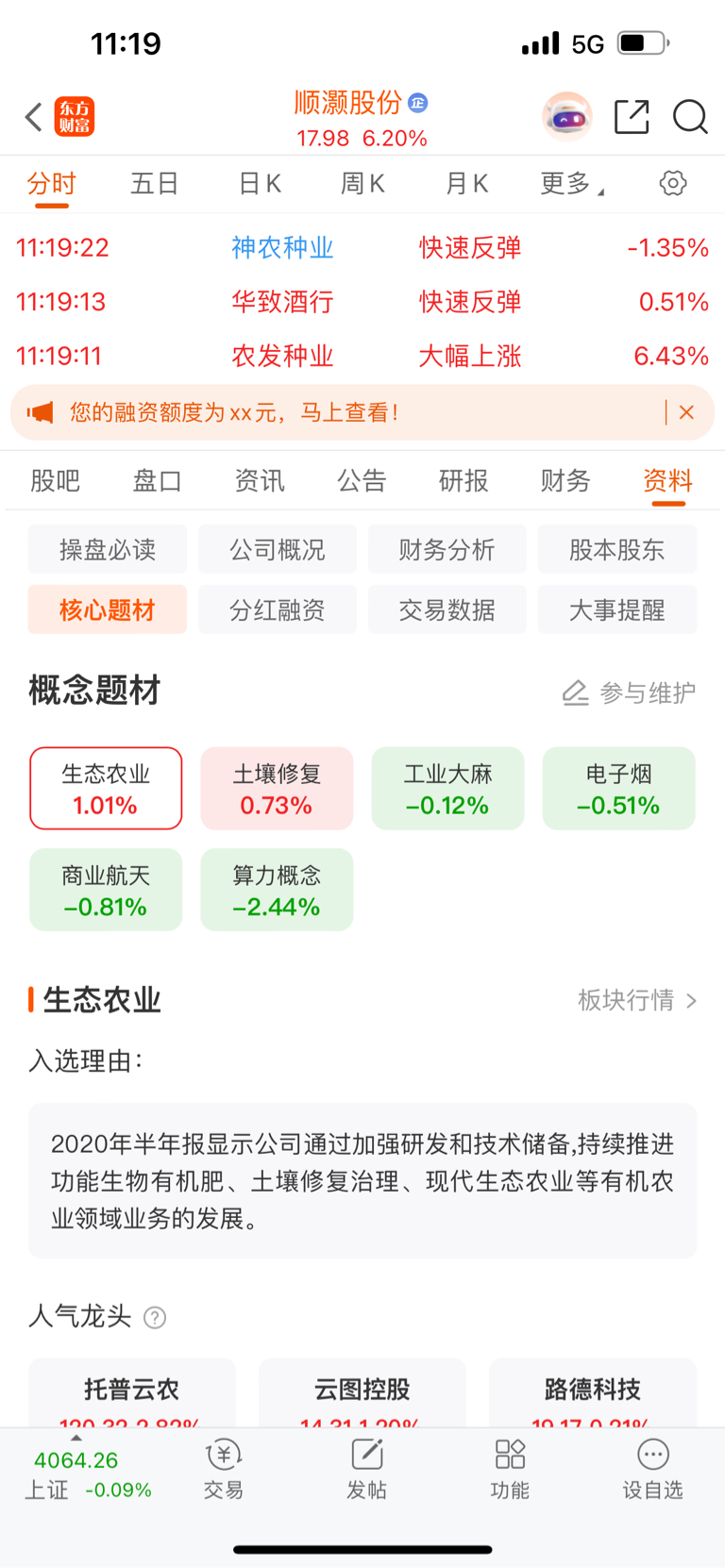 $顺灏股份(SZ002565)$ 人家走的是农业板块 收益于昨天的文件利好