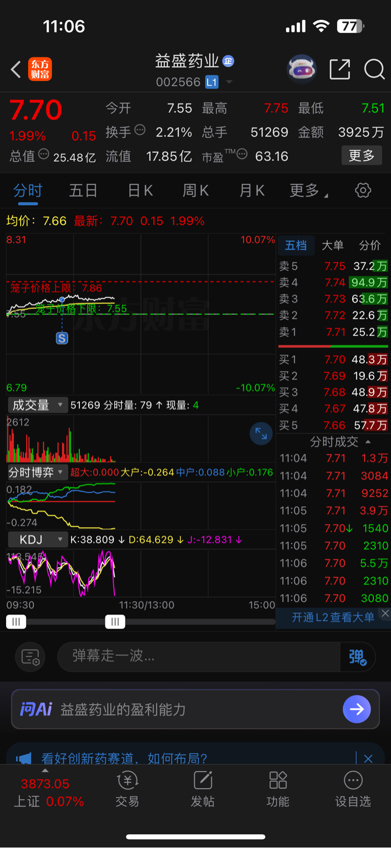 $益盛药业(SZ002566)$ 留下发财,散户太多,主力不作为