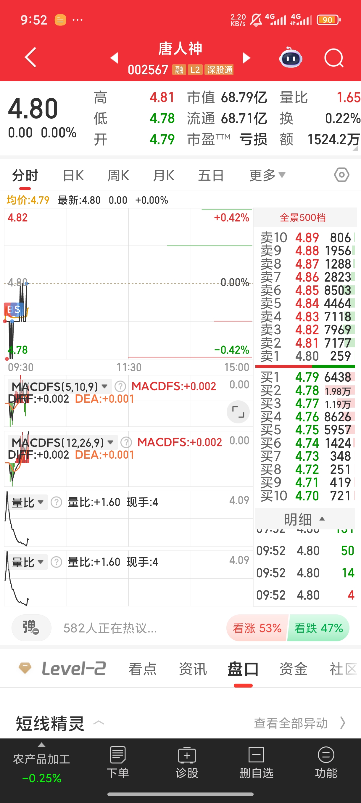 $唐人神(SZ002567)$ 没做好,就一分钱,下班。