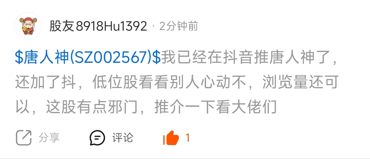 $唐人神(SZ002567)$ 拿稳了拿住了耗到底吃大肉,继续表演继续看好唐人神