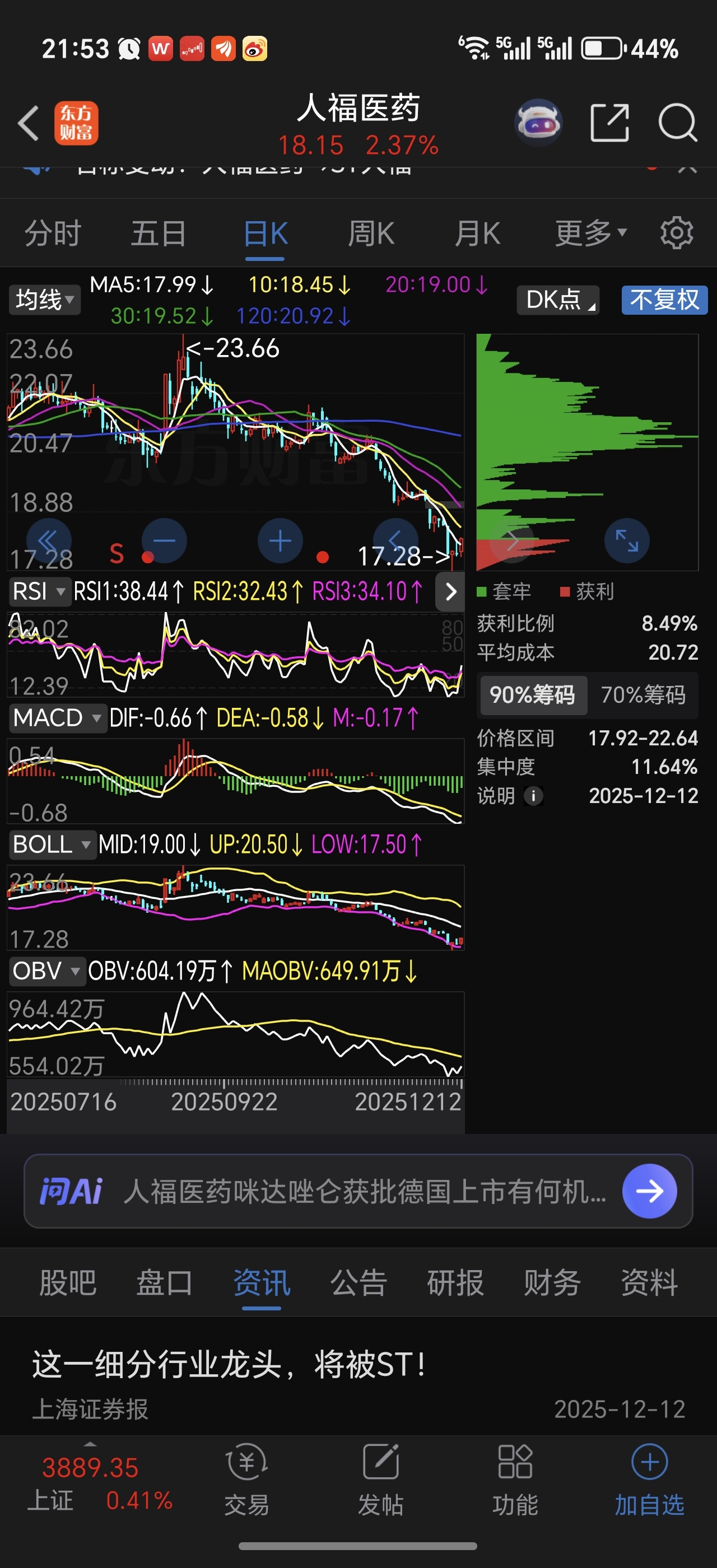 $唐人神(SZ002567)$ 看人福医药没有?ST了,要跌多少?