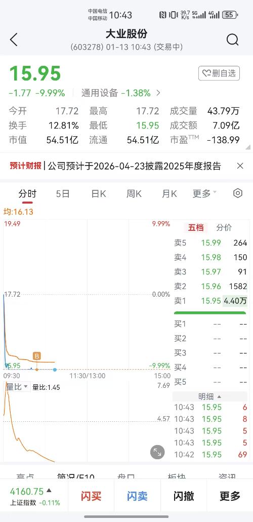 唐人神的股民们,你们知足吧,昨天跌停进的大业股份,今天又一个跌停,崩溃啊,唐人神