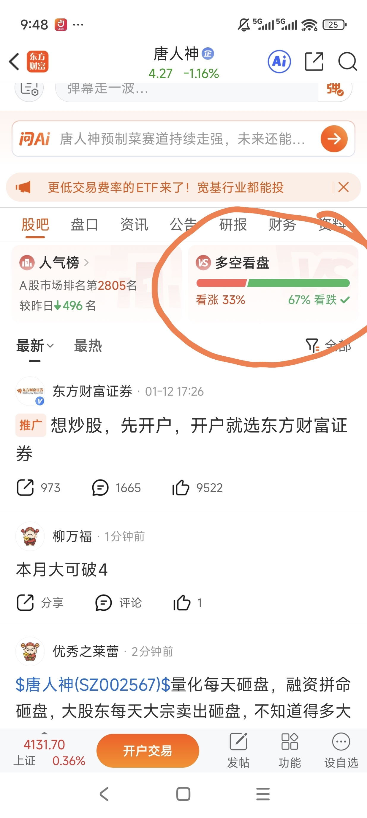 $唐人神(SZ002567)$ 还有33%看涨,说明散户还没有跌崩溃,只能继续往下砸。
