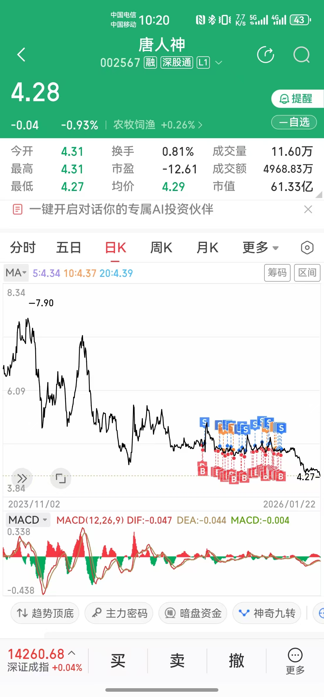 炒唐人神很难吗?这股基本不会暴跌,就跟捡钱一样,去年这股赚的最少。开个玩笑,别生气哈