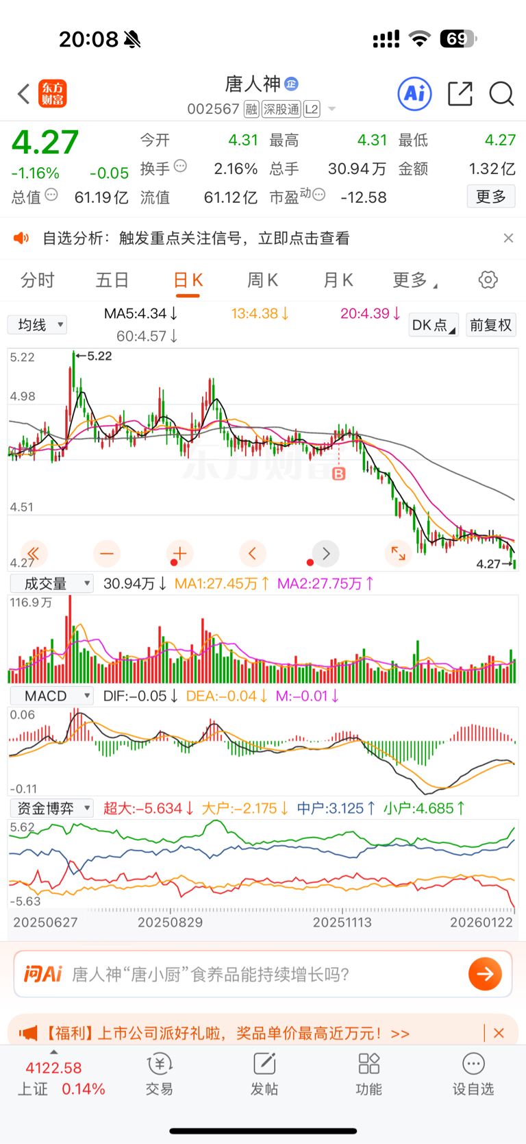 $唐人神(SZ002567)$ 亏12个点了,骚猪,还钱!!