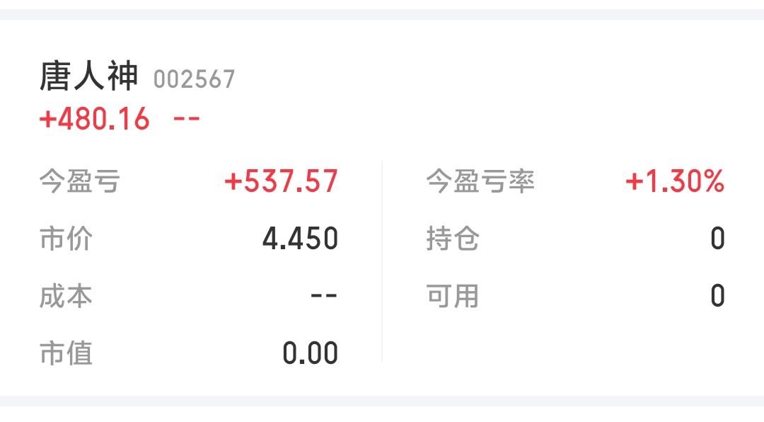 $唐人神(SZ002567)$ 我散户跑了,主力你可以涨停了,4万赚了400多,一个点就跑了