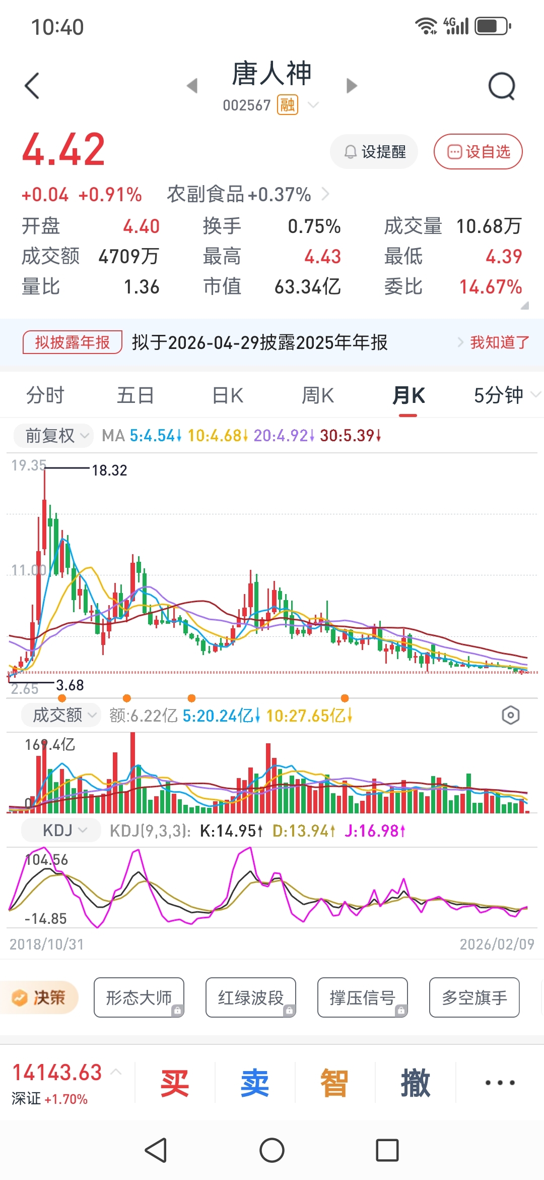 $唐人神(SZ002567)$ 今年最垃圾的股票,18块跌到4块,一点反弹迹象都没有。散了散了。