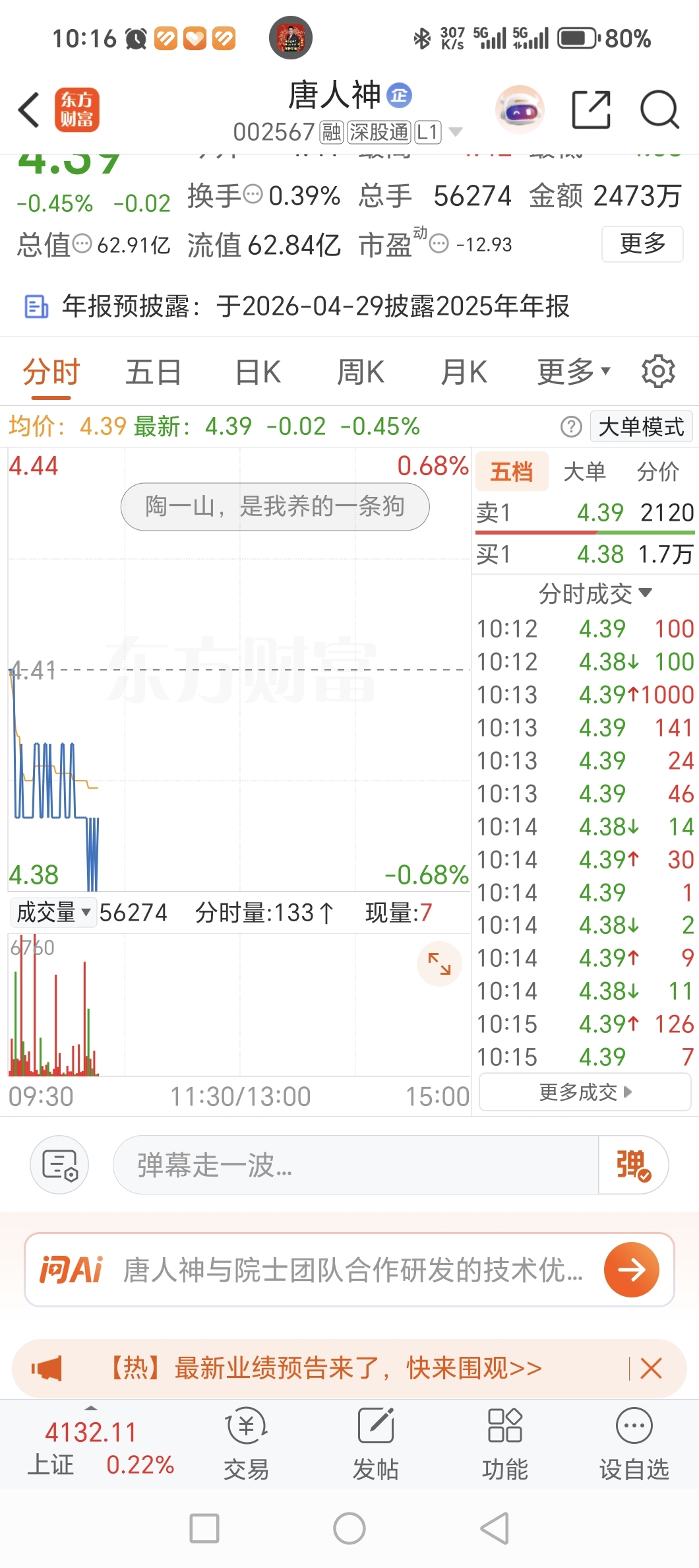 $唐人神(SZ002567)$