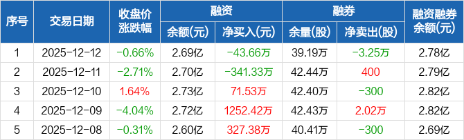 百润股份:融资净偿还43.66万元,融资余额2.69亿元(12-12)
