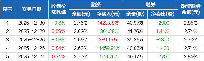 百润股份:融资净买入1423.88万元,融资余额2.76亿元(12-30)