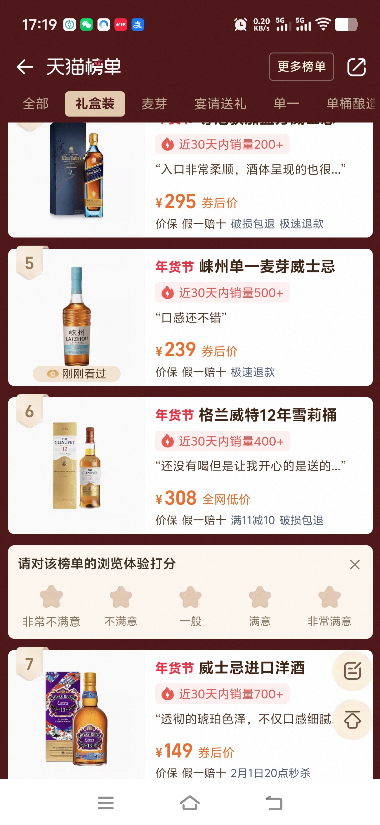威士忌有三款进去了前20,,中规中矩。还行