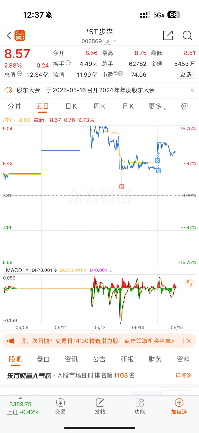 $*ST步森(SZ002569)$ 还有1/3。尾盘不板就出了