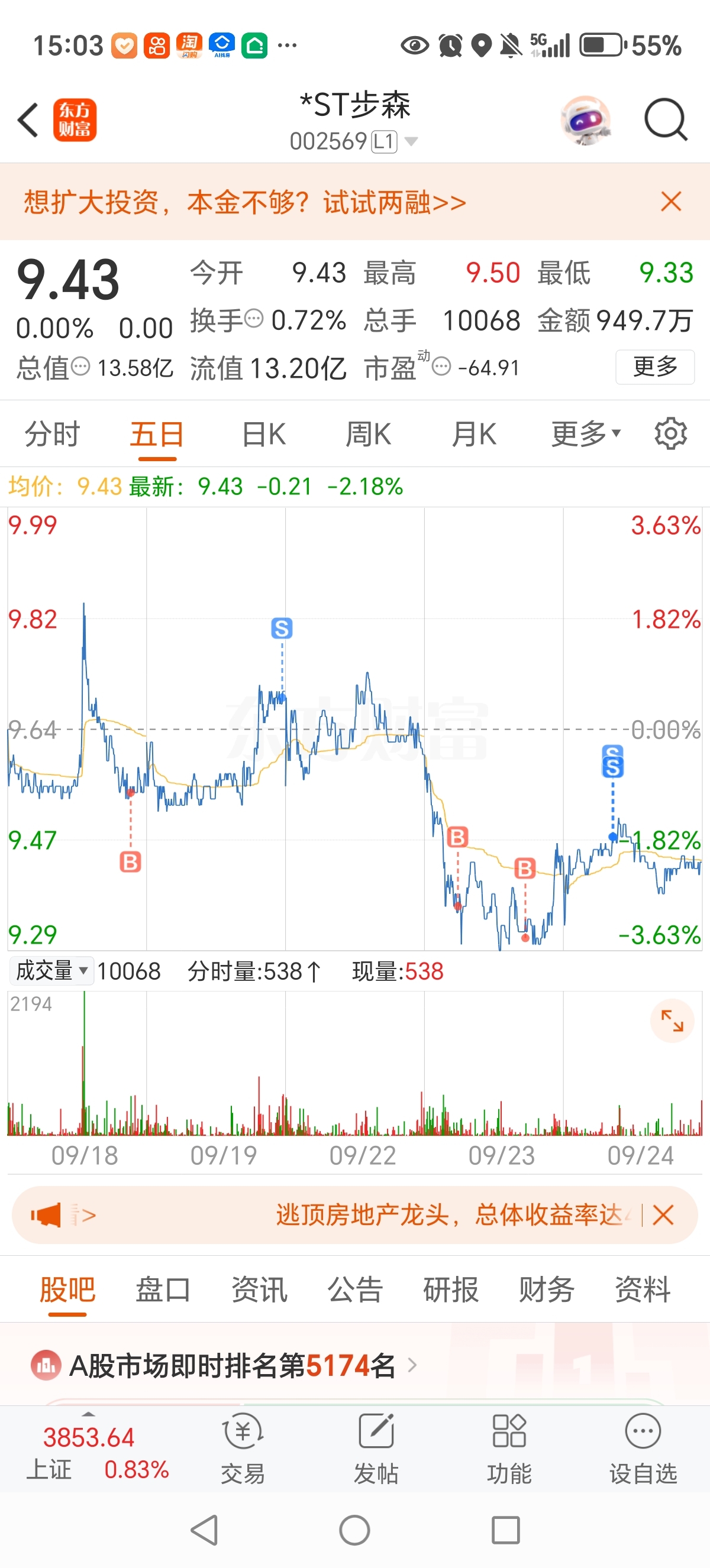$*ST步森(SZ002569)$ 无所谓多空,底仓也陪主力做T,昨天低买,今天高卖。一两毛钱做T也是钱