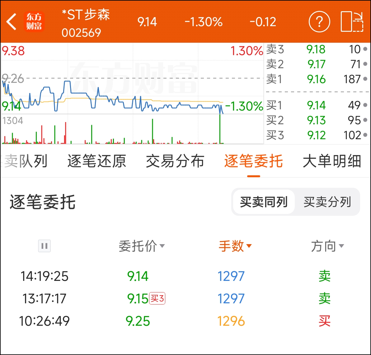 $*ST步森(SZ002569)$ 今天一个大户走了吗?砸了 2个1297