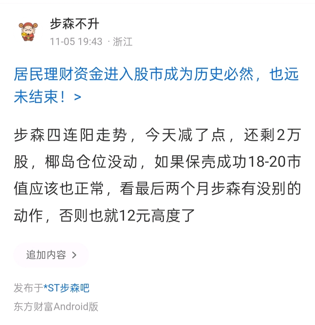 $*ST步森(SZ002569)$ 看了下贴吧,有不少人减仓或想做T了,期中不少是之前使劲唱多的,这样挺好,终于有人给你接盘了,看一看上周我帖子的含金量,目前持股持股未动,目前st板块持有步森和椰岛。