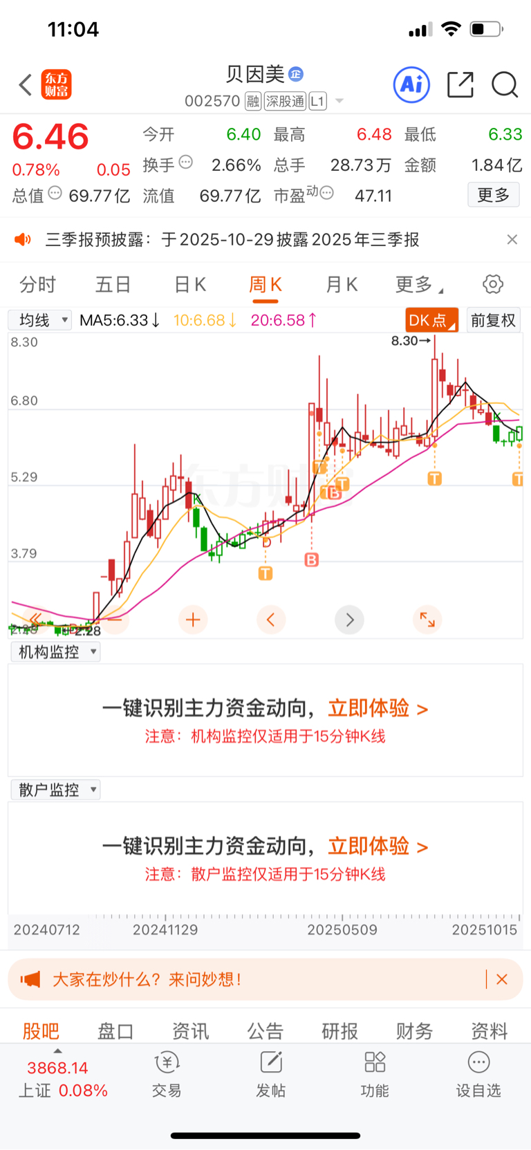 $贝因美(SZ002570)$ 昨天建仓了,不到8块一股不卖