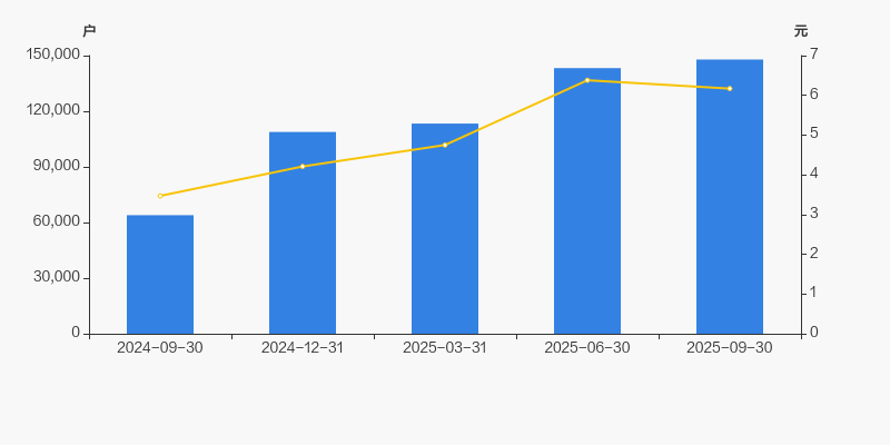 截至2025年9月30日,公司最新流通股本为10.8亿股。户均持有流通股数量由上期的7539股下降至7302股,户均流通市值4.51万元。