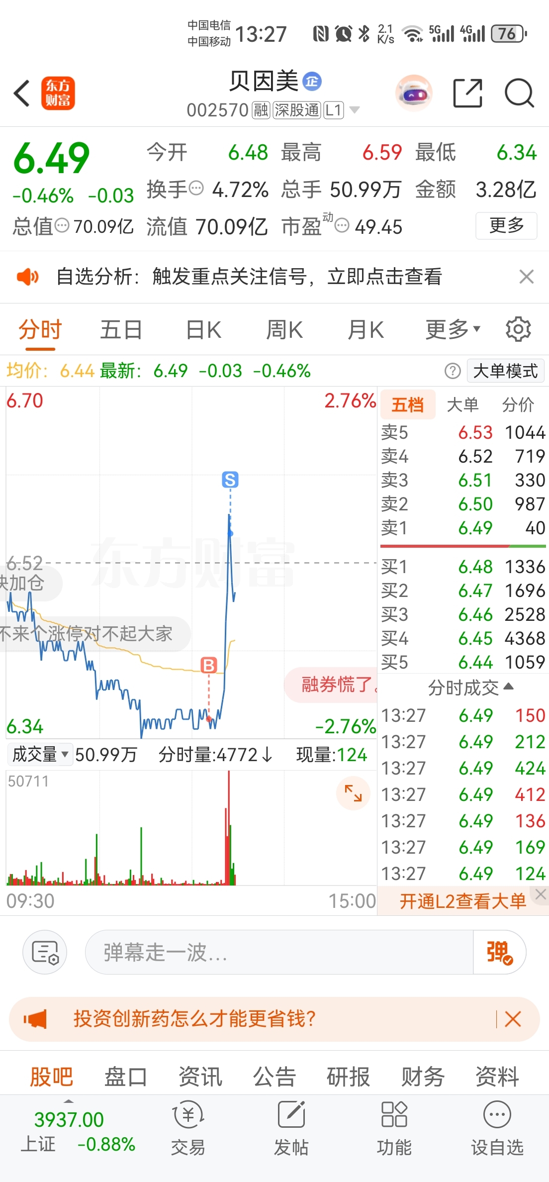 $贝因美(SZ002570)$ 薅点羊毛