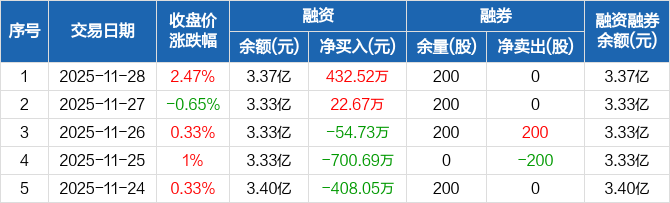 贝因美:融资净买入432.52万元,融资余额3.37亿元(11-28)