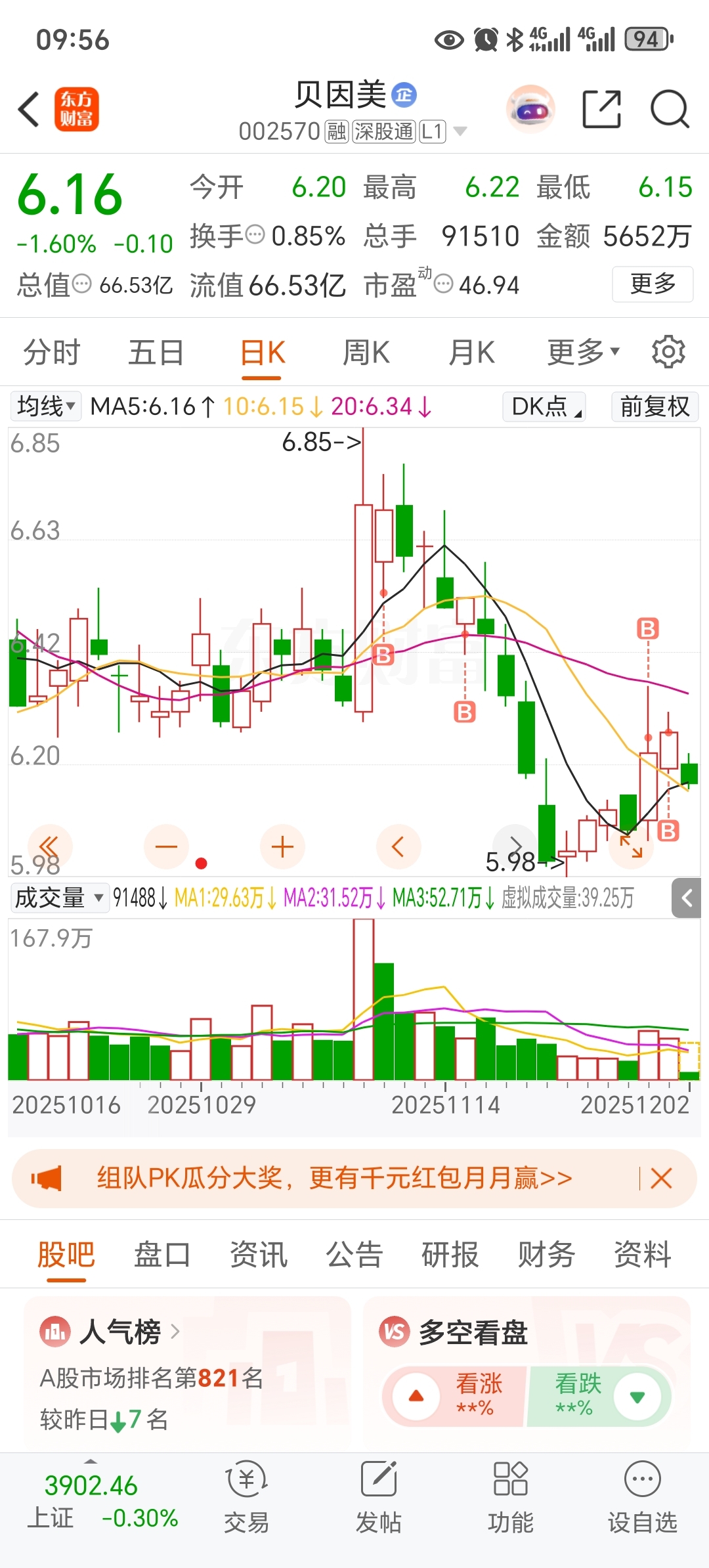 $贝因美(SZ002570)$ 以为要崛起,没想到是挂在山顶
