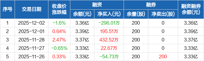 贝因美:融资净偿还296.01万元,融资余额3.36亿元(12-02)