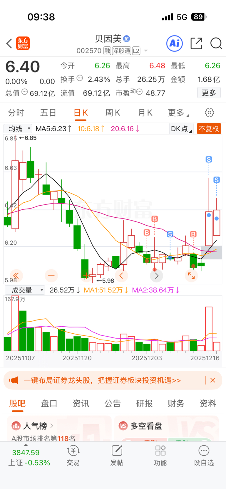 $贝因美(SZ002570)$ 走了,祝车上的兄弟们发财