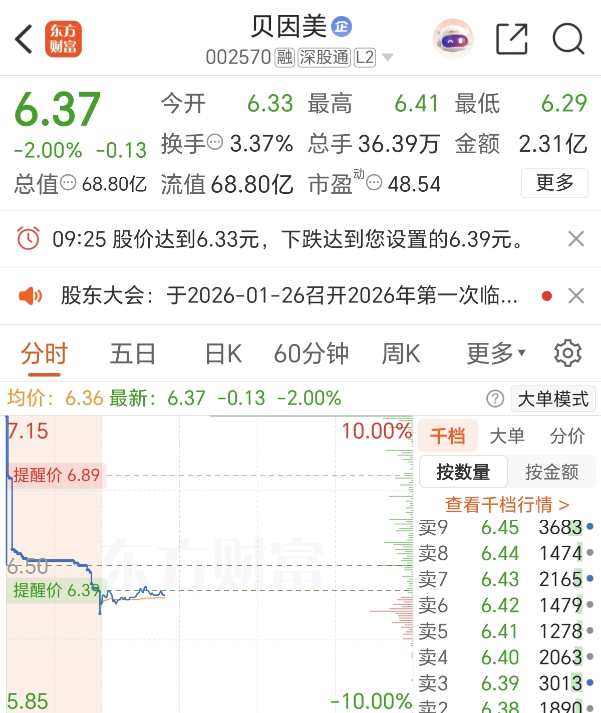 $贝因美(SZ002570)$ 其实我画了6.39的防御线 结果一早上没上…