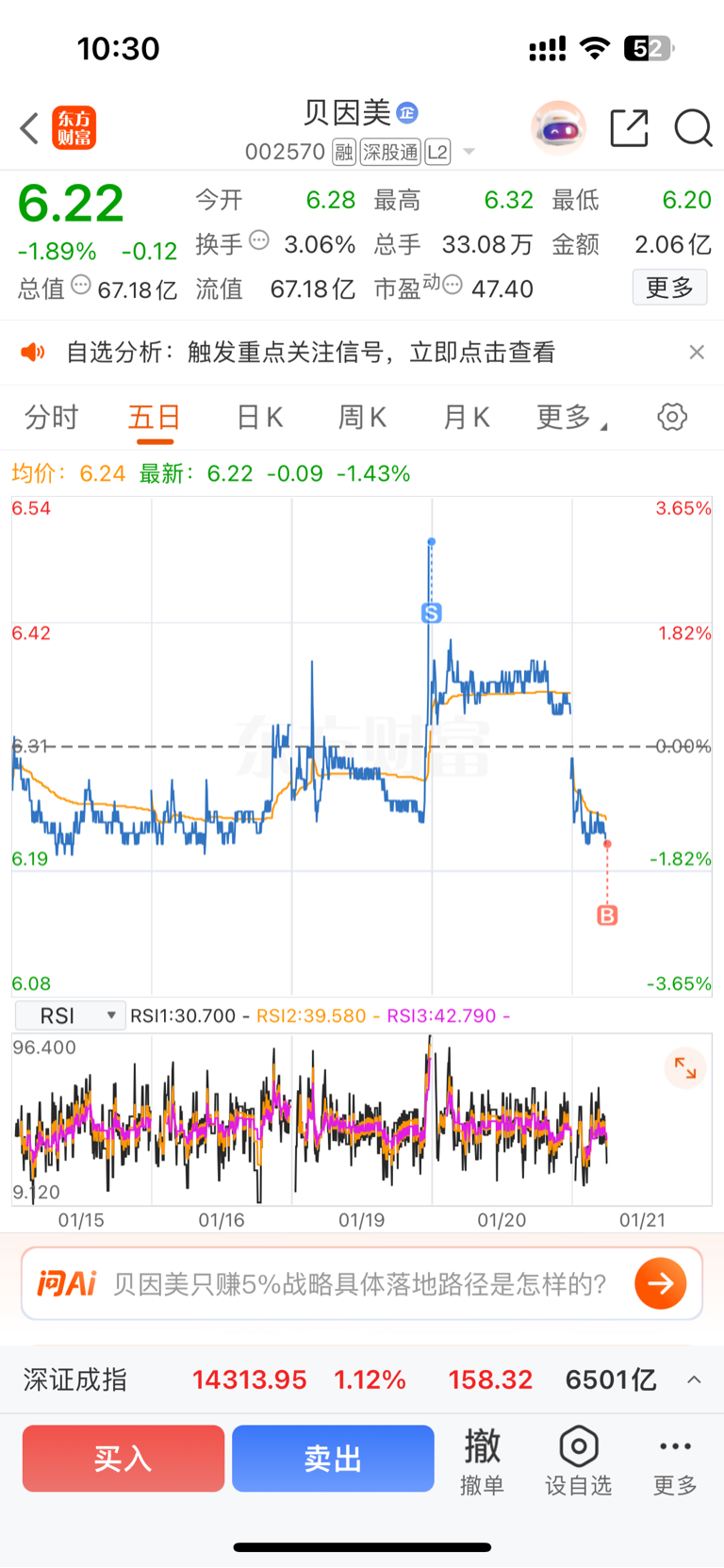 $贝因美(SZ002570)$ 前天尾盘跑的,今天先接一半回来