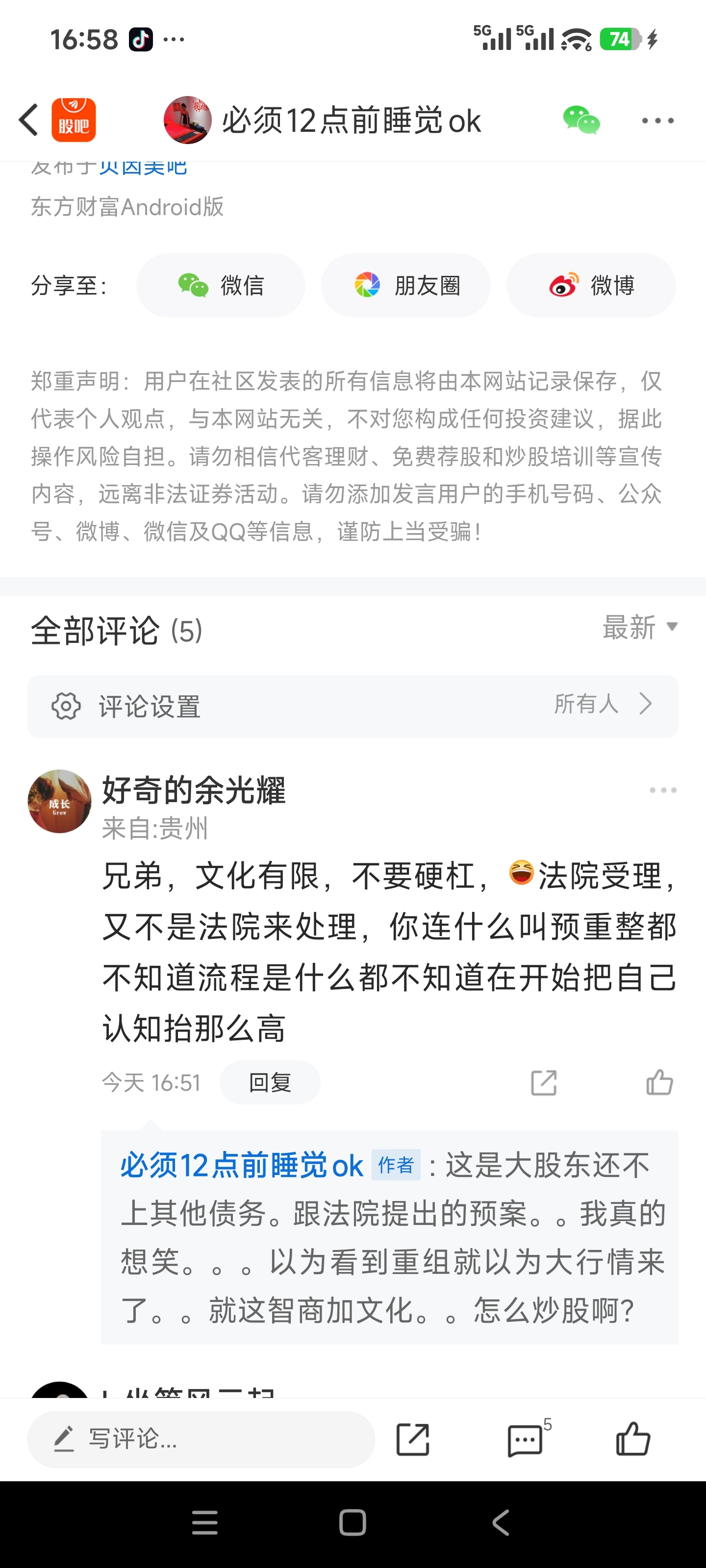 温馨提示: 1.根据《证券法》规定,禁止编造、传播虚假信息或者误导性信息,扰乱证券市场;2.用户在本社区发表的所有资料、言论等仅代表个人观点,与本网站立场无关,不对您构成任何投资建议。用户应基于自己的独立判断,自行决定证券投资并承担相应风险。《东方财富社区管理规定》