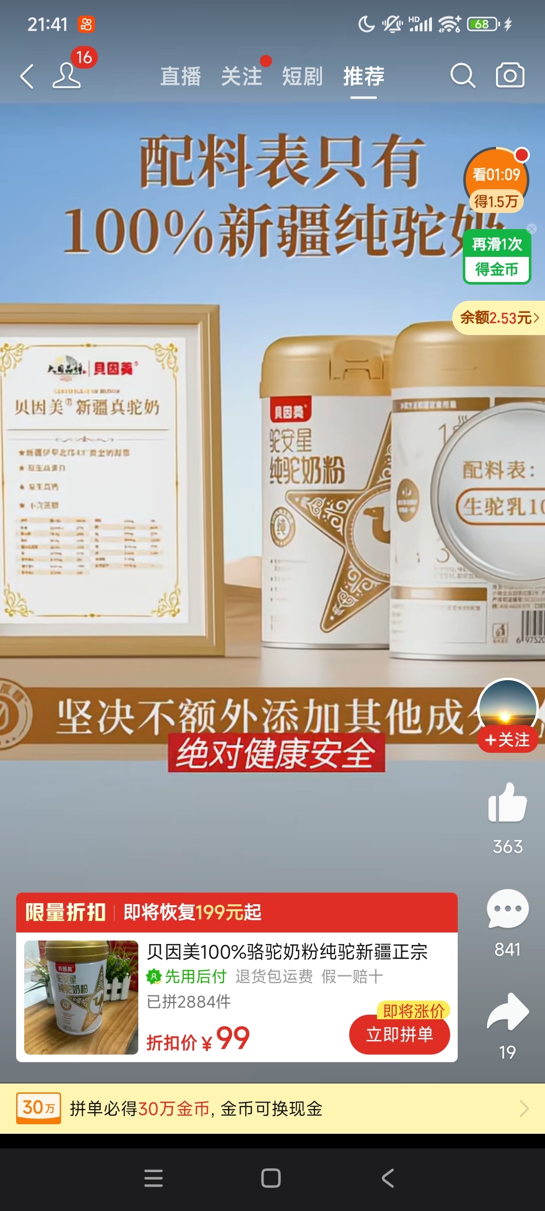 $贝因美(SZ002570)$ 生产纯驼奶粉啦?