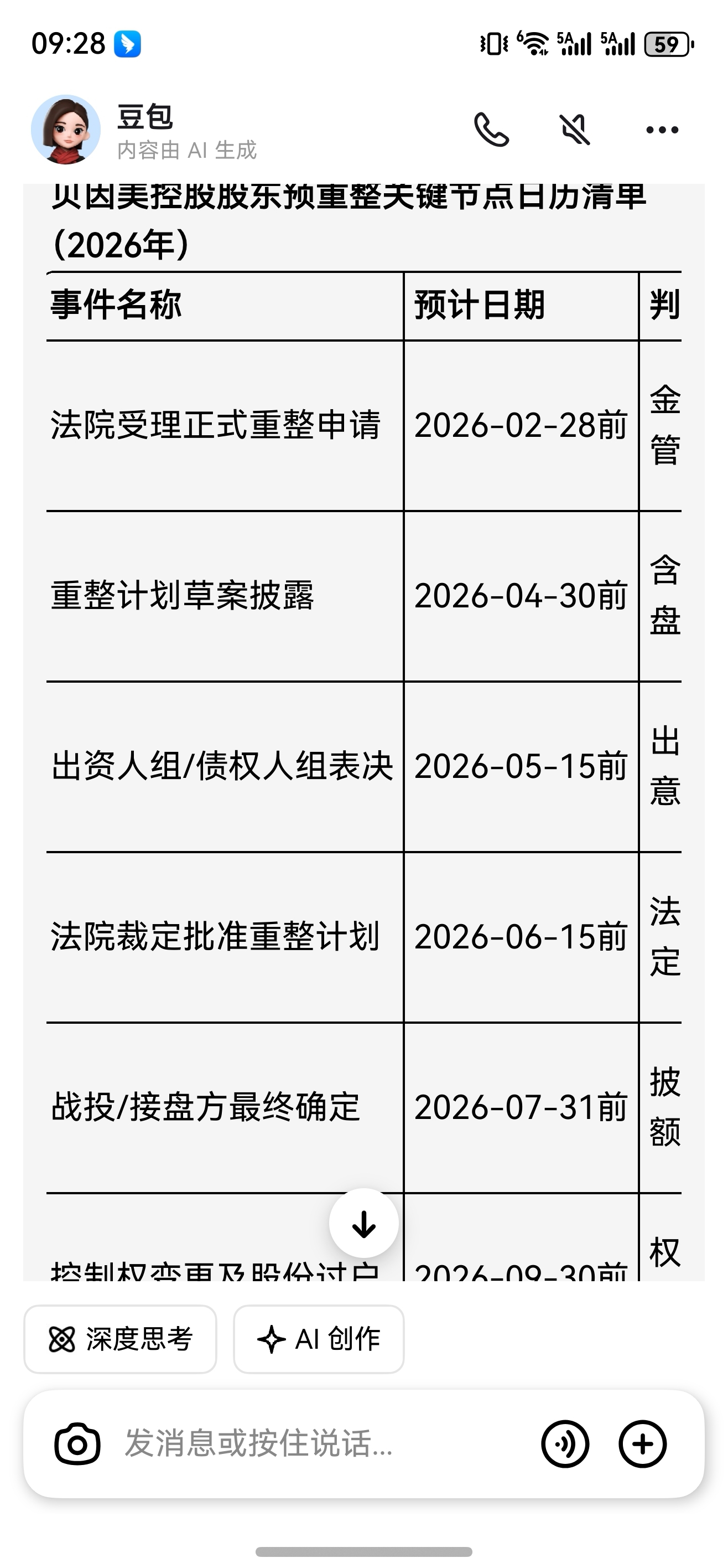 豆包给的预重整后续进度表,还是在一切顺利的情况下,简直太慢了,遥遥无期。。