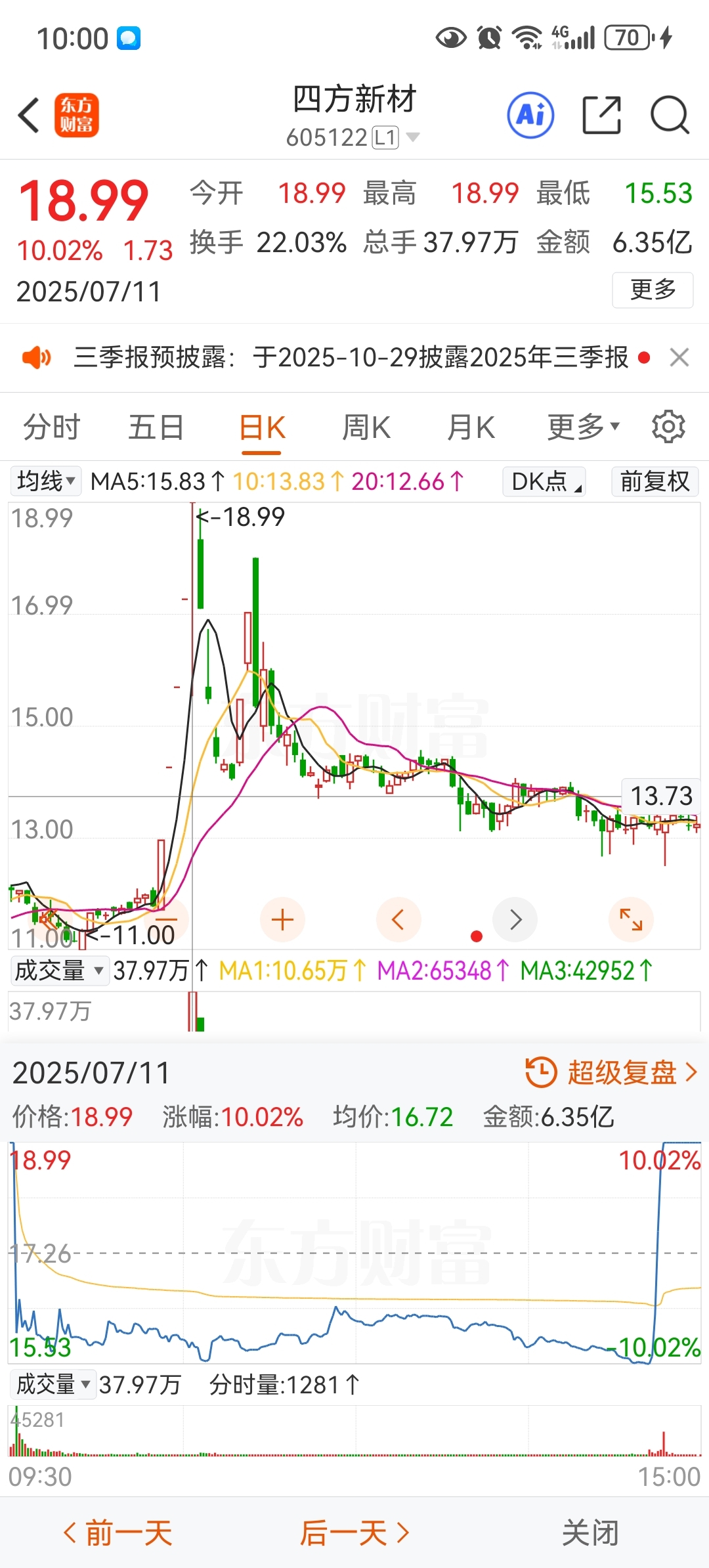 四方新才在2025年7月11日也是一字板开盘,然后瞬间直线砸到跌停附近(跟德力差不多)。然后几乎全天横盘走势,后来又快速直接拉涨停并封死涨停(比德力强)。当天晚上股吧也是炸了锅,个个都在说,主力狠,洗盘洗的很漂亮。说卖出的散户意志不坚定被洗了。而白天有抄底的散户开心的不得了,以为要发大财了。结果第二天起暴跌开始。买的越多亏的越多