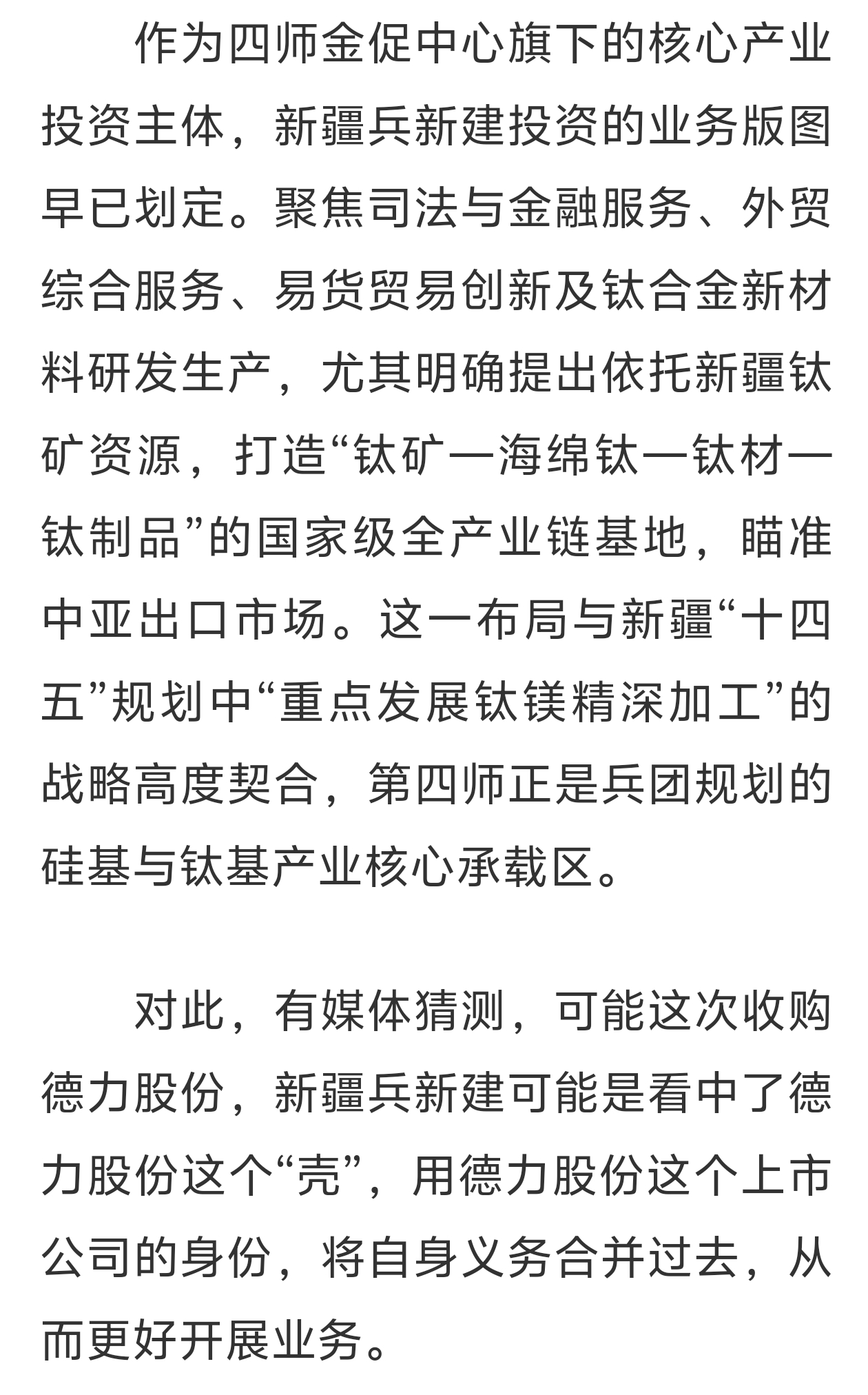 $德力股份(SZ002571)$ 新疆国资携手吉林国资控股德力股份,一定还有更深层次的战略意义。一个是德力的玻璃是光学武器和半导体碳化硅的原材料,二是新疆国资有钛资源需要注入.等原因,特意在9.26成立新公司控股德力股份
