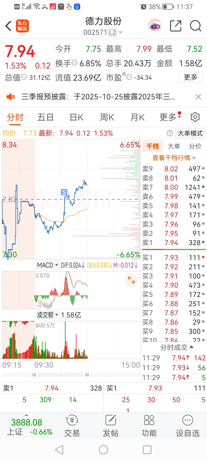 $德力股份(SZ002571)$ 什么玩意?水下三个点割了结果你拉红了?我以为这烂票没庄了