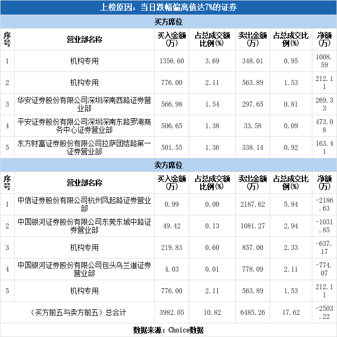 深交所2025年12月25日交易公开信息显示,德力股份因属于当日跌幅偏离值达7%的证券而登上龙虎榜。德力股份当日报收9.60元,涨跌幅为-7.25%,偏离值达-7.88%,换手率12.76%,振幅6.47%,成交额3.68亿元。