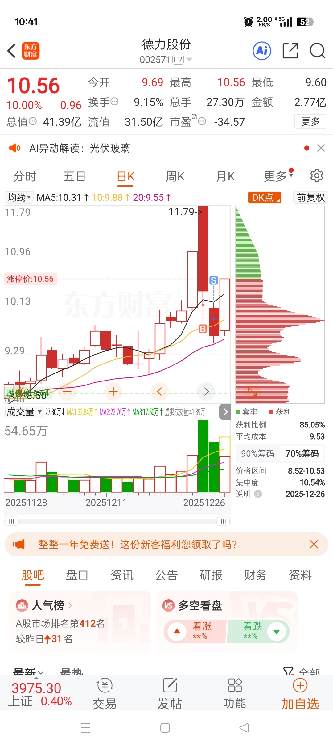 $德力股份(SZ002571)$ 昨天割了你今天就涨停