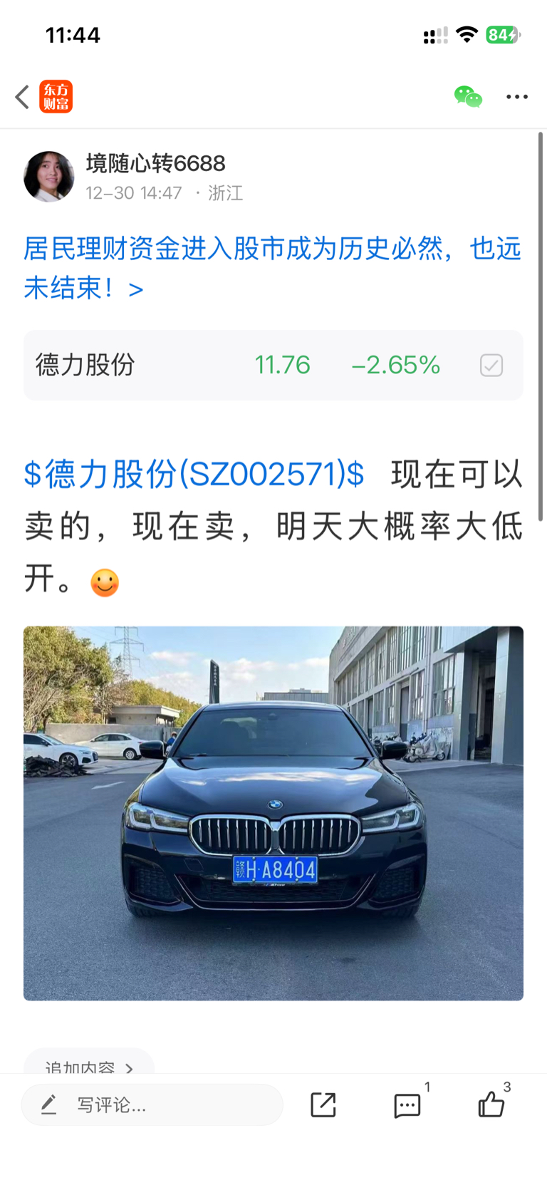 $德力股份(SZ002571)$ 昨天走的,今天舒服吧