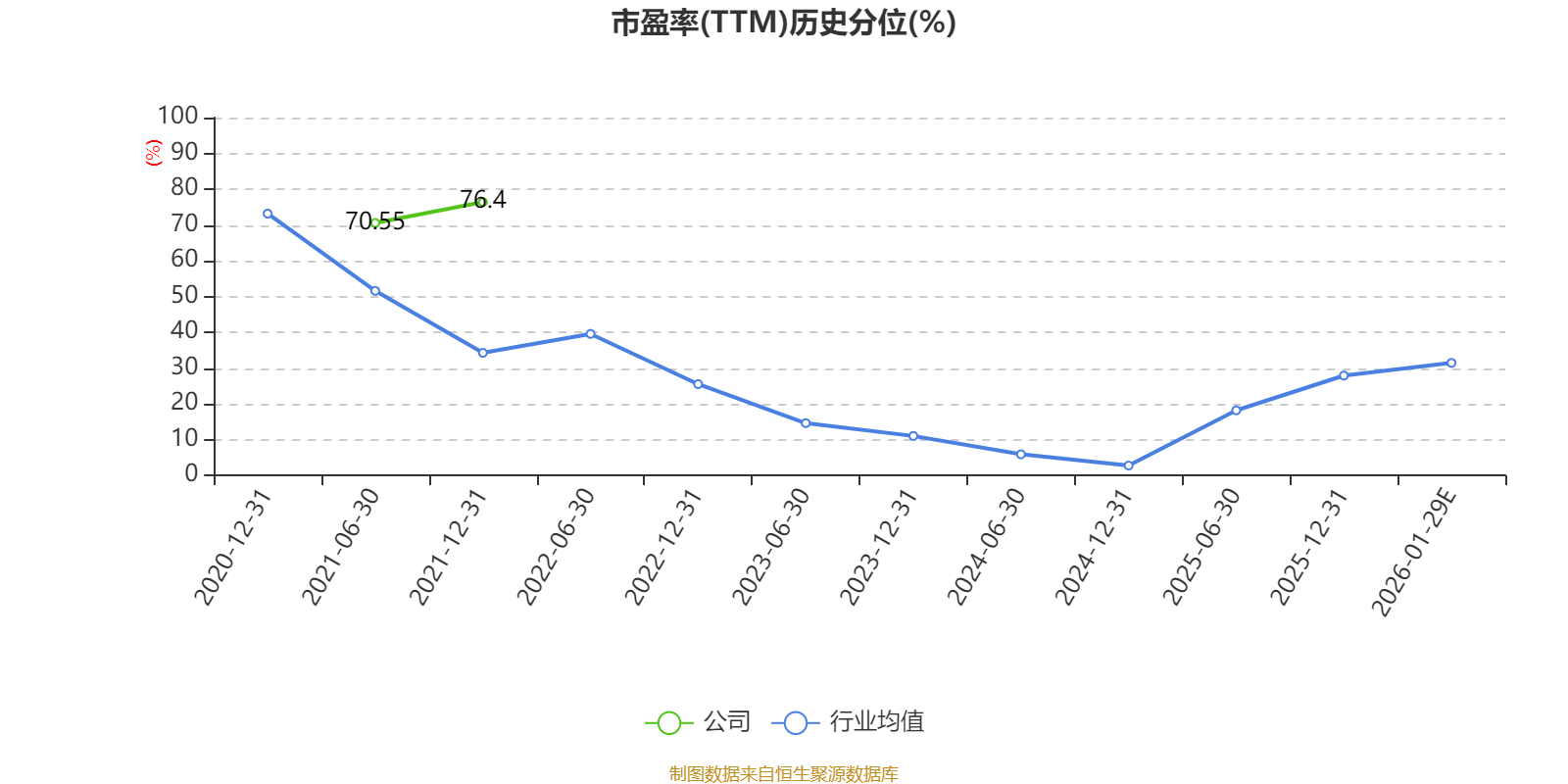 以本次披露业绩预告均值计算,公司近年市盈率(TTM)图如下所示:
