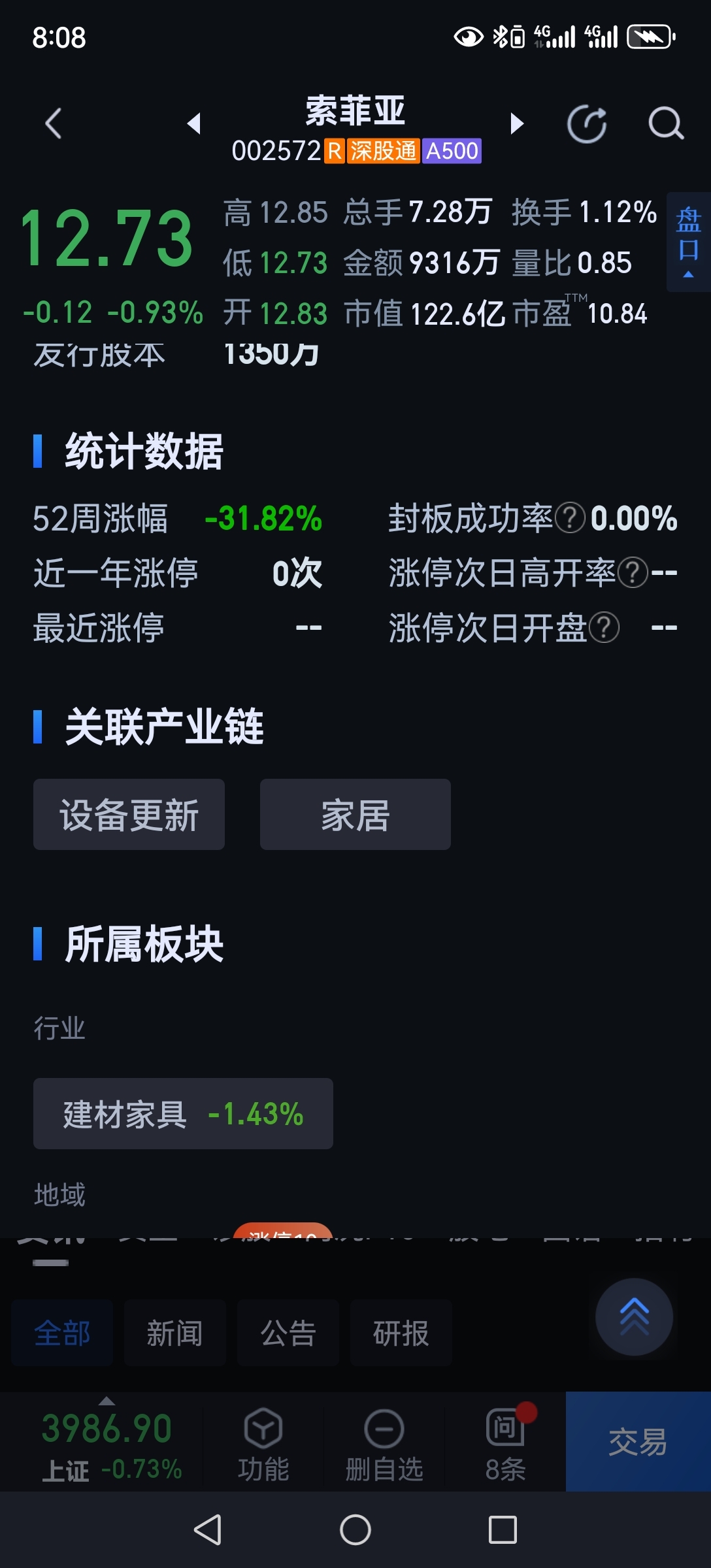 $索菲亚(SZ002572)$ 昨日买了点,年报1.1元/股总是会有的。52周(1年)涨幅—31%也太过份了!