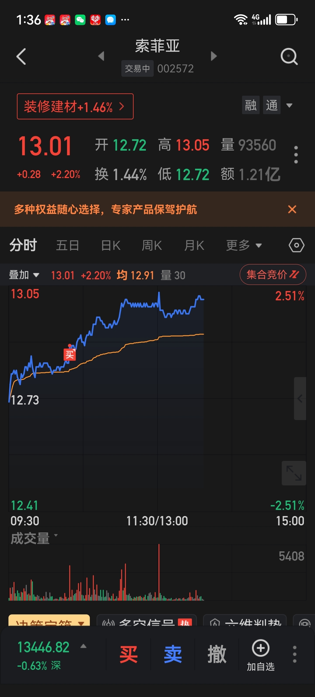 $索菲亚(SZ002572)$ 开盘就准备,就是不下来,见势不对,只有追上去。希望别跌